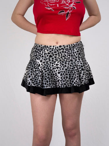 Fluffy leopard print mini skirt