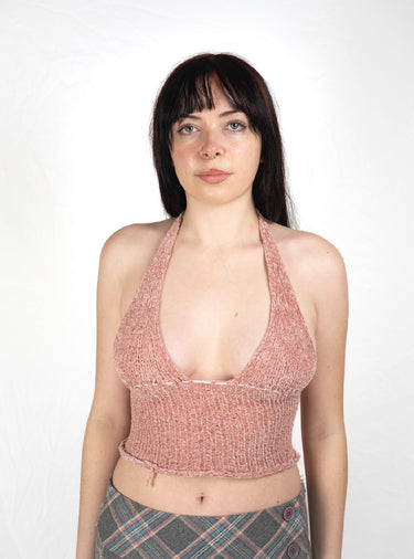 Knot rags original pink knitted halter neck top